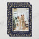 Celebrate the holidays with this elegant blue photo Christmas card featuring gold holly on a dark blue background. Easily add your favourite photo and text to this blue photo Merry Christmas card.
