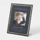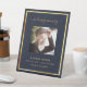 A dark blue background, a faux gold frame and space for your photo. Personalise and add name, dates and your text.