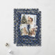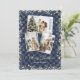 Blue Gold Plaid Photo Collage Merry Christmas Holiday Card