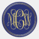 Blue Gold Preppy Vine Script Monogram DIY BG Classic Round Sticker