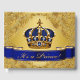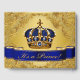 Prince baby shower guest book with royal blue and gold crown and its a prince banner on a fancy gold swirl background. This fancy prince baby shower guest book is easily customised for your event by adding text and moving/removing the crown and banner as needed.