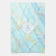 Blue Gold Printed Marble Pattern Custom Monogram Tea Towel
