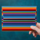 The serape or sarape is a long blanket-like shawl, often brightly coloured stripes with fringe at the ends worn in Mexico. This pattern is a classic colours of blue, gold, and red. Perfect for Cinco de Mayo or National Enchilada Day (also on May 5)--or Taco Tuesday or you know, any day!
