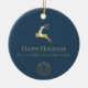 Blue Gold Reindeer Happy Holidays Business Logo Ceramic Tree Decoration