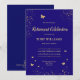 A delightful Blue & Gold Retirement Party Invitation that is sure to please your guests. Here we have a bold design featuring a deep blue background, highlighted with bright gold-coloured text. This card is gender neutral and is easily personalised.