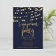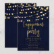 Blue Gold Rustic Wood & Lights Engagement Party Invitation