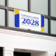 Colleges, universities, high schools, and institutes of higher learning can add sophistication to graduation ceremonies with this modern, contemporary banner, which features elegant lettering set on royal blue, gold, and white backgrounds. Customise with congratulatory message, graduating year, name of school/college/university, academic logo and/or slogan. Colours and font types can be modified as desired.