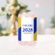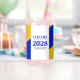 Colleges, universities, high schools, and institutes of higher learning can add sophistication to graduation merchandise with this modern, contemporary can glass design, which features elegant lettering set on royal blue, gold, and white backgrounds. Customise with name of school/college/university and academic logo/motto/seal. Colours and font types can be modified as desired. Reverse shows identical design.