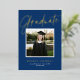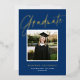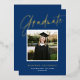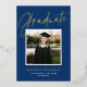 This chic graduation announcement features a colourful blue background (customisable), elegant typography, and one square photo. The beautiful calligraphy script "Graduate" and your student's name are both in raised gold foil! School attended and future school is flat printed in white. This is a chic and elegant design. You can customise this design even further by adding another photo or additional text to the backer. Foil is available in gold, silver, or rose gold and absolutely shines! Select real foil graduation announcements to add the wow factor!