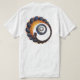 Two-sided tee with an intricate blue-and-gold spiral mandala. Front: small left-chest emblem. Back: large ornate swirl with feathered petals, fine linework, and concentric rings for a bold boho-geometric look. Great for yoga, meditation, and festival style. Customise tee style, colour, and art size on Zazzle.