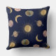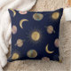 Blue Gold Sun Moon Planets Space illustration Cushion