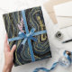 Blue Gold Swirl Glam Art Birthday Party Wrapping Paper