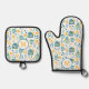 Blue Gold Tea Time Pattern Monogram Oven Mitt & Pot Holder Set