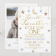 Blue Gold Twinkle Little Star Photo Birthday Invitation