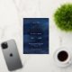 This elegant wedding invitation features a dreamy navy blue watercolor background with shimmering real gold foil stars, creating a romantic celestial theme. The text is beautifully arranged with a mix of modern serif fonts, with key details highlighted in radiant gold foil for a sophisticated touch. The couple’s names stand out in bold lettering, with an elegant ampersand adding to the refined aesthetic. Subtle metallic accents enhance the invitation’s luxurious feel, making it perfect for an evening wedding under the stars. Ideal for celestial, cosmic, or starry night-themed weddings, this invitation captures the magic of a love that shines as bright as the night sky.