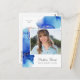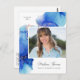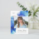This pretty watercolor graduation announcement features a large photo framed by blue and gold watercolors. Below the photo, the graduate's name is written in modern calligraphy script. On the back, you can add grad party details and a custom message to recipients.