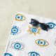 Blue, Gold & White Greek Eye Mati Pattern Beach Towel