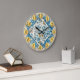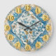 Pretty Teal blue gold and white Italian or Portuguese tile-look kitchen wall clock.