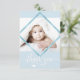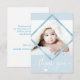 Cute and modern baby boy shower thank you in a pastel light blue and white colours. Frame in faux blue gold foil frame and PHOTO. Thank you in calligraphy and heart. Personalise your message in back of card.
