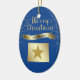 Give them something pretty from the great state of Wyoming! On the front of this ornament is a shiny gold silhouette image of the state, with a darker gold star imposed over it. Above the state and star image is the glittery message MERRY CHRISTMAS in script, and a banner with the text in blue WYOMING. Around it all are gold snowflakes. The images and text are placed on a deep blue background. The back of the ornament has text fields in light gold for you to customize, and a second gold star image. You may change the background color, if you'd like, by choosing CUSTOMIZE.