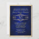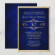 This formal wedding anniversary celebration invitation features a gold number 50 framed within a heart image gold scroll frame on an elegant burnished dark royal blue background. The customisable text is also in gold, with the image and the text framed in whole with a matching gold border frame. The back of the invitation is matching burnished blue. **Please note -- the image is printed on the card, which contains no metal substance.**