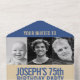 Blue golden brown three photos 75th Birthday party All In One Invitation