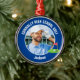 This cool customized high school golf team photo gift features white typography of your golfer name on a Christmas ornament with a cute golfing icon on a blue background. Personalize with your student's photograph and class year as a proud sports parent.