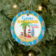 Spruce up your Christmas tree with this fun round ceramic ornament. This design features a fun tropical Hawaiian Santa's Gone Surfing theme with colourful surfboard background. Please feel free to contact me through the message feature if you need assistance with this design or if you'd like to add different customisation. Or you may contact me via email at zazzlestores@yahoo.com. Artwork created by Home For The Holidays.