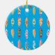 Blue Gone Surfing Santa Round Ceramic Ornament