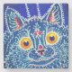 Stone Coaster featuring Louis Wain’s animal painting A Cat in Gothic Style (1860-1939). A psychedelic blue cat amicably looks with yellow eyes at the viewer. A wonderful gift for cat lovers and English art.