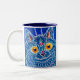 Coffee Mug featuring Louis Wain’s animal painting A Cat in Gothic Style (1860-1939). A psychedelic blue cat amicably looks with yellow eyes at the viewer. A wonderful gift for cat lovers and English art.