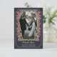 Thank your guests with a touch of gothic romance. This thank you card features a coffin-shaped frame with your photo, surrounded by thorns, roses, and rose gold accents against a blue background. A hauntingly beautiful keepsake for your special day! Personalise the text, font, and background colour to suit your design preferences. Matching Items in our shop for a complete party theme. Please note that the rose gold on the invitation is NOT real foil and is printed in flat colours.