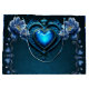 Deep blue gothic heart surrounded by magical flowers. The blue heart exudes a mysterious depth, while the flowers create a romantic and dreamy atmosphere