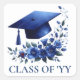 Blue Grad Cap and Flowers Graduate Envelope Square Sticker