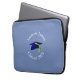 Laptop sleeve featuring a blue graduation cap (class of 2025) personalise it with a name now; it comes with curved text in white . You can change the colour of the background and the text.