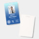 Vertical office employee badge with a simple design against a gradient from pale blue to sky blue. Add a photo of the employee along with name and profession. Personalise further with two business logos.