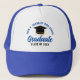 These modern blue custom senior graduate hats feature your high school or college name for the class of 2025. Customise with your graduating year under the chic handwritten script and black grad cap for a great personalised graduation party favour gift.