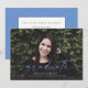 This full bleed photo graduation announcement features the word "graduate" written in blue script across the front. It has space for the graduate's name, class year, and school. The back of the card can be used for a personal message or graduation party invitation details.