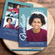 Be proud, rejoice and showcase this milestone of your favourite grad! Send out this stunning, simple, modern, personalised 4 photo announcement for an event to remember. On the front, bold, graphic, white handwritten script calligraphy, white and navy sans serif typography and a photo of your choice in an arch overlay a dusty turquoise and navy blue background. On the back, 3 additional custom photos and your personalised note overlay turquoise and navy blue. Personalise the custom text with your grad’s name, school and class year. On the back, add 3 more photos and your personal note of the next school they’re attending, their degree, – or whatever else you want to share. Matching invites, thank you cards, cap toppers, napkins, plates and other graduation goodies are also available in this trendy and stylish collection. Guaranteed to add stylish fun to their special occasion! Just replace the 4 sample photos with ones of your own, type in your grad’s name, school and class year, add more photos and their personal note on the back, and you can easily personalise this graduation announcement. Please message me with any questions or requests.
