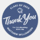 Blue Graduation Bold Script Cap Thank You Minimal Classic Round Sticker