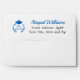 Personalized graduation envelope in blue color theme. It's designed with a return address on the back flap and a cap and laurel logo with your class year inside. It has an inside color to match. Other colors available.