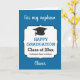 This is a personalised nephew graduation card designed in a blue. You can easily personalise with the class year, name and the student's school. Inside, this graduation nephew card, it reads "Congratulations, you did it! All of your hard work and determination paid off. You should be proud of