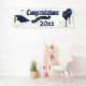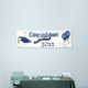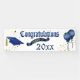 Class of graduation congratulations banner done in blue, white, and gold. Graphics of blue balloons, golden stars, a mortarboard cap and a blue class of banner decorate the white indoor banner. Blue graphic text reads Congratulations. Personalise the blue year to suit your graduation event needs.