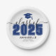 Celebrate this milestone with a stylish and personalised graduation paper plate, perfect for serving food at a graduation party. Featuring "Class of 2026" (or any year) in bold typography, the year and graduation cap icon are highlighted in navy blue, while all other text remains classic black. A simple black frame borders the edges for a polished look.