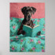 Blue Great Dane Dog Reading A Book Poster Print