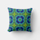 Blue and green abstract Moroccan quatrefoil geometric pattern thow pillow, featuring an abstract Moroccan tile in tones of blue and green.