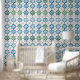 Blue Green Abstract Tile Pattern Wallpaper