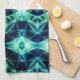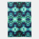 Opaque neon greenish blue repeat of virtual image with some triangular shapes forming some irregular curved stripes.
