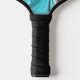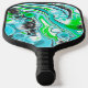 Modern pour painting marble effect blue, lime green and black abstract art pickleball paddle.