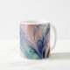 A mesmerizing marbled design featuring swirling feather-like patterns in blue, green, and peach tones, accented with dark blue dots for added texture and depth—perfect for artistic prints, decor, or campaign visuals